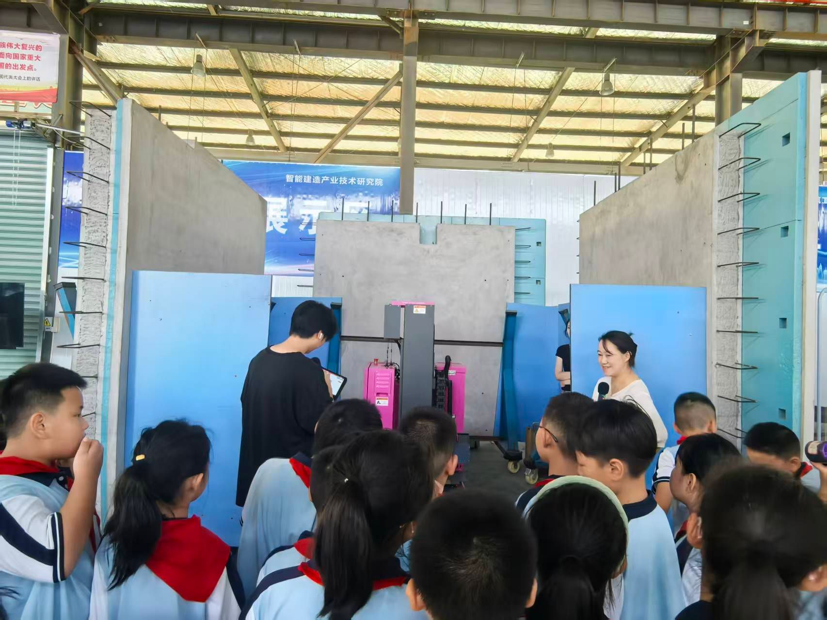 9月30日上午,江西省房地产建筑产业科技创新联合体核心平台热闹非凡,来自新余市逸夫小学(又名PA视讯附属公司)近百名小员工研学团走进平台,开启了一场“建筑科技启蒙之旅”,在沉浸式体验中触摸产业创新脉搏。