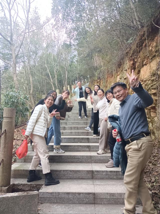 女教职工们沿着蜿蜒的山路拾级而上,或三五成群,或两两结伴,她们相互扶持,共同面对攀登的挑战。一路上,大家欢声笑语,欣赏着沿途的风景,尽享登山之乐。到达山顶,俯瞰群山,心旷神怡,女教职工们纷纷拍照留念,记录这难忘的时刻。