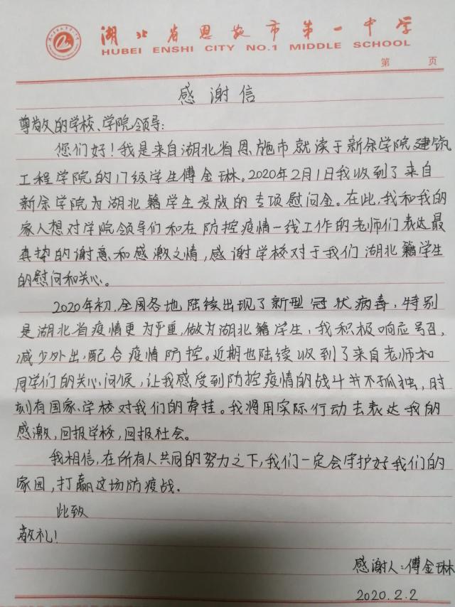 日前,公司湖北籍员工给公司发来感谢信,对公司给予的充分关心与亲切问候表示最真挚的感谢。