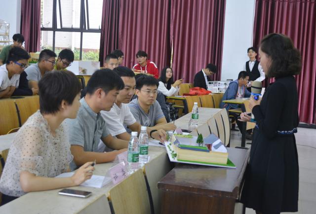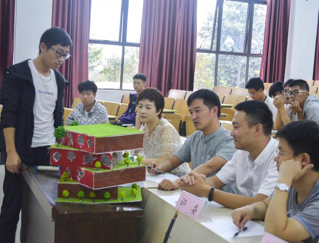 决赛伊始,七支参赛队伍抽签决定展示顺序,随后各组负责人对小组作品的创新创意、结构功能、外观设计等进行现场解说,比赛中,评委主要从作品的内容构思、设计理念、制作水平、美观程度等方面对参赛作品进行专业评分,并针对各模型的不足之处提出了改进建议。最后,钟鑫老师作总结发言,指出同学们的设计都别出心裁,希望同学们继续努力,再创佳绩。