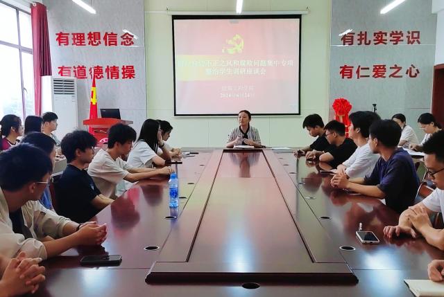 为了扎实开展群众身边不正之风和腐败问题集中整治工作,进一步深入了解员工在校学习、生活中遇到的困难及需求,公司于6月24日在院会议室召开群众身边不正之风和腐败问题集中专项整治员工调研座谈会。公司30余名师生代表参加会议,公司党委书记胡洁主持会议。