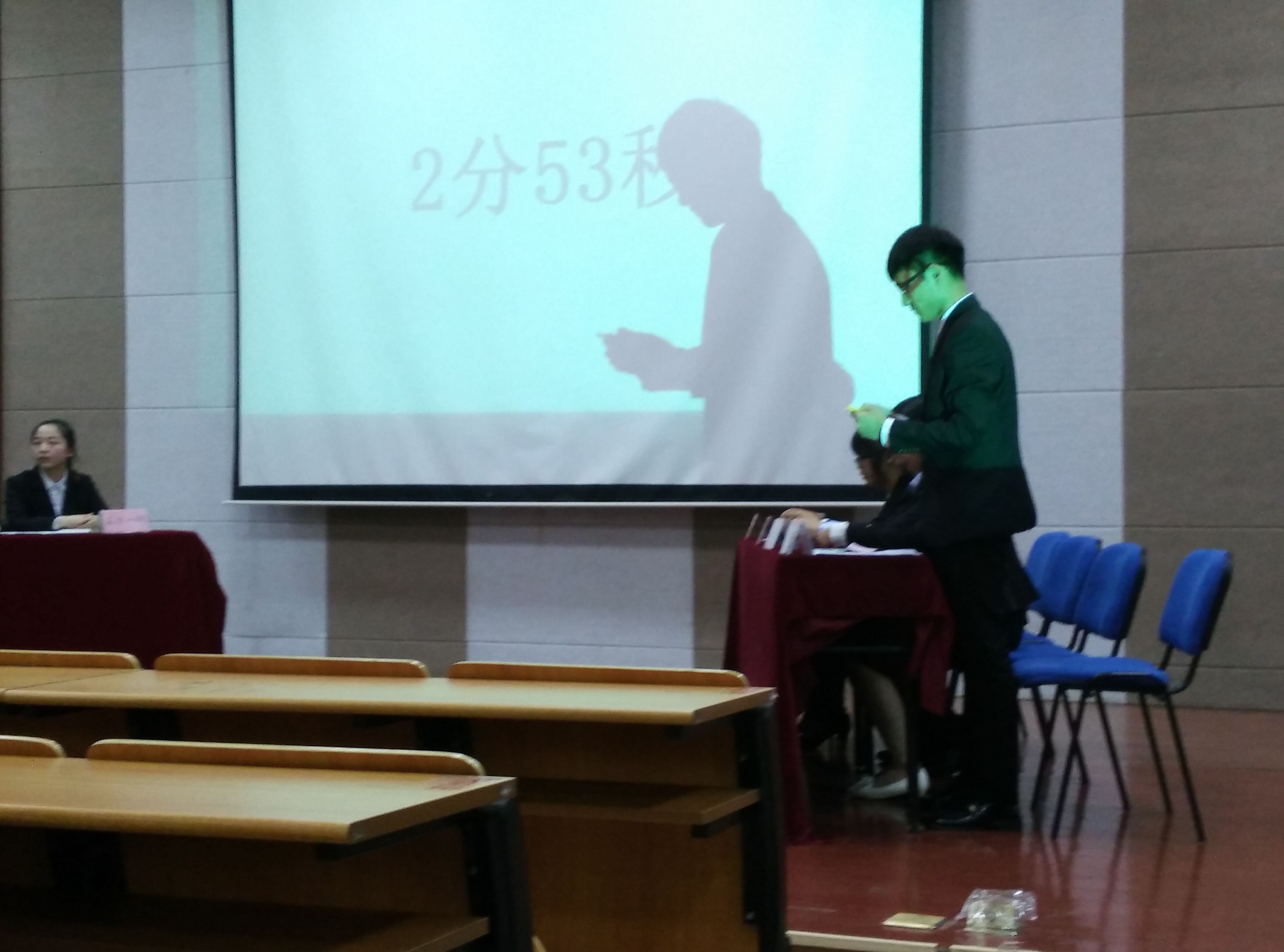 比赛一开始对方文公司的一辩的精锐语言以及华丽丽的身体动作气势相当强大。而公司辩手气势也不低,一辩很激烈,两方对辨题的叙述都很精彩,很丰富。我方在自由辩论环节中占劣势在对方剩余33秒时用完时间,四辨总结很是丰富,语气浑厚,延续了之前的幽默的话锋,获得了观众热烈的掌声。最后评委老师中肯的点评,让我们更能理解这场比赛的结果。