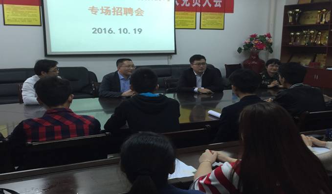 10月19号下午2:00,上海智平基础工程有限公司张经理来到PA视讯官网进行招聘。副经理徐理、公司党委副书记钟益兰、员工科科长黄新仁以及前来应聘的二十多位莘莘学子出席了本次招聘会。