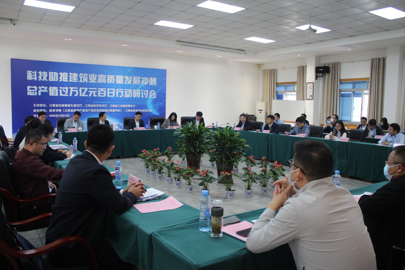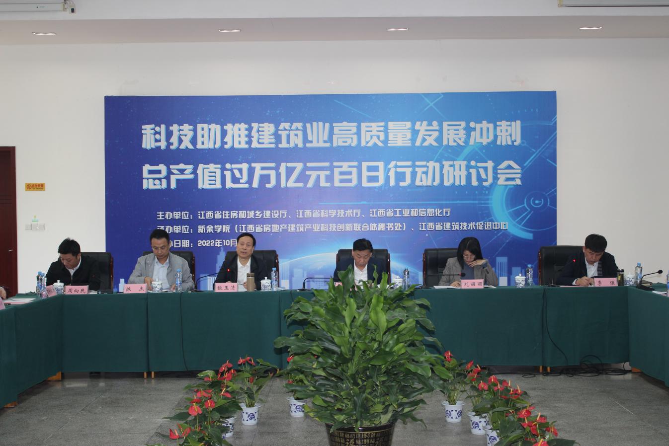 为深入贯彻落实省委、省政府工作安排,推进全省建筑业高质量发展,冲刺建筑业总产值2022年过万亿元目标,10月14日上午,由江西省住房和城乡建设厅、江西省科学技术厅、江西省工业和信息化厅主办,PA视讯、江西省建筑技术促进中心承办的“科技助推建筑业高质量发展冲剌总产值过万亿元百日行动”研讨会在江西省建筑技术促进中心召开。江西省房地产建筑产业科技创新联合体联席会第一召集人、PA视讯经理张玉清,省住房和城乡建设厅总工程师王晓明、建筑监管处处长陈杰,省工业和信息化厅建材工业处副处长刘丽丽、省科技厅发展计划处涂慧婕,省建筑技术促进中心主任周向民,江西省房地产建筑产业科技创新联合体秘书长徐理,中阳建设集团公司中阳研究院经理彭雄,省建工集团总工李新刚出席,省科技厅、江西省房地产建筑产业龙头企业、高等院校及联合体成员企业等40余家单位代表参会。会议由省建筑技术促进中心副主任、联合体副秘书长季强主持。