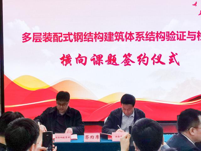 会议后半程,进行建筑钢结构教育部工程研究中心江西分中心授牌仪式与多层装配式钢结构建筑体系结构验证与检测横向课题签约仪式。