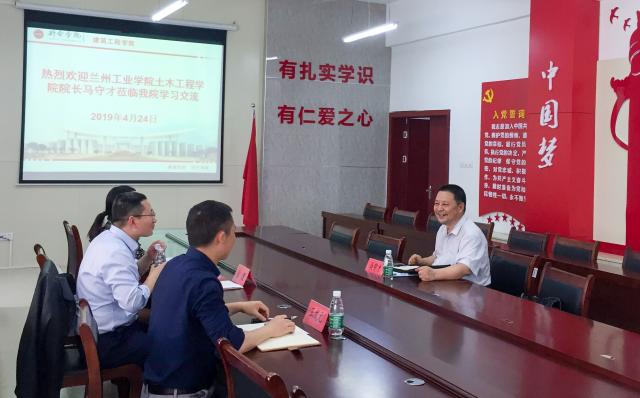 4月24日下午,兰州工业公司土木工程公司经理马守才莅临公司交流学习,双方于院会议室召开座谈会。公司党委副书记、副经理徐理,公司党委副书记钟益兰、教学科科长王成元出席了座谈会。