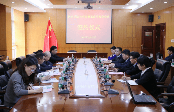 2月20日下午,公司与中山建工公司校企合作签约仪式在行政楼二楼会议室举行。出席此次签约仪式的嘉宾有中能集团公司总裁熬杰、副总经理毛晓冰,中山建工公司总经理简水宝、副总经理何小红、刘腾生和PA视讯董事长史可、转型办主任黄勇、PA视讯官网副经理徐理、公司党委书记钟益兰、副经理张小义及院部分教师员工代表。