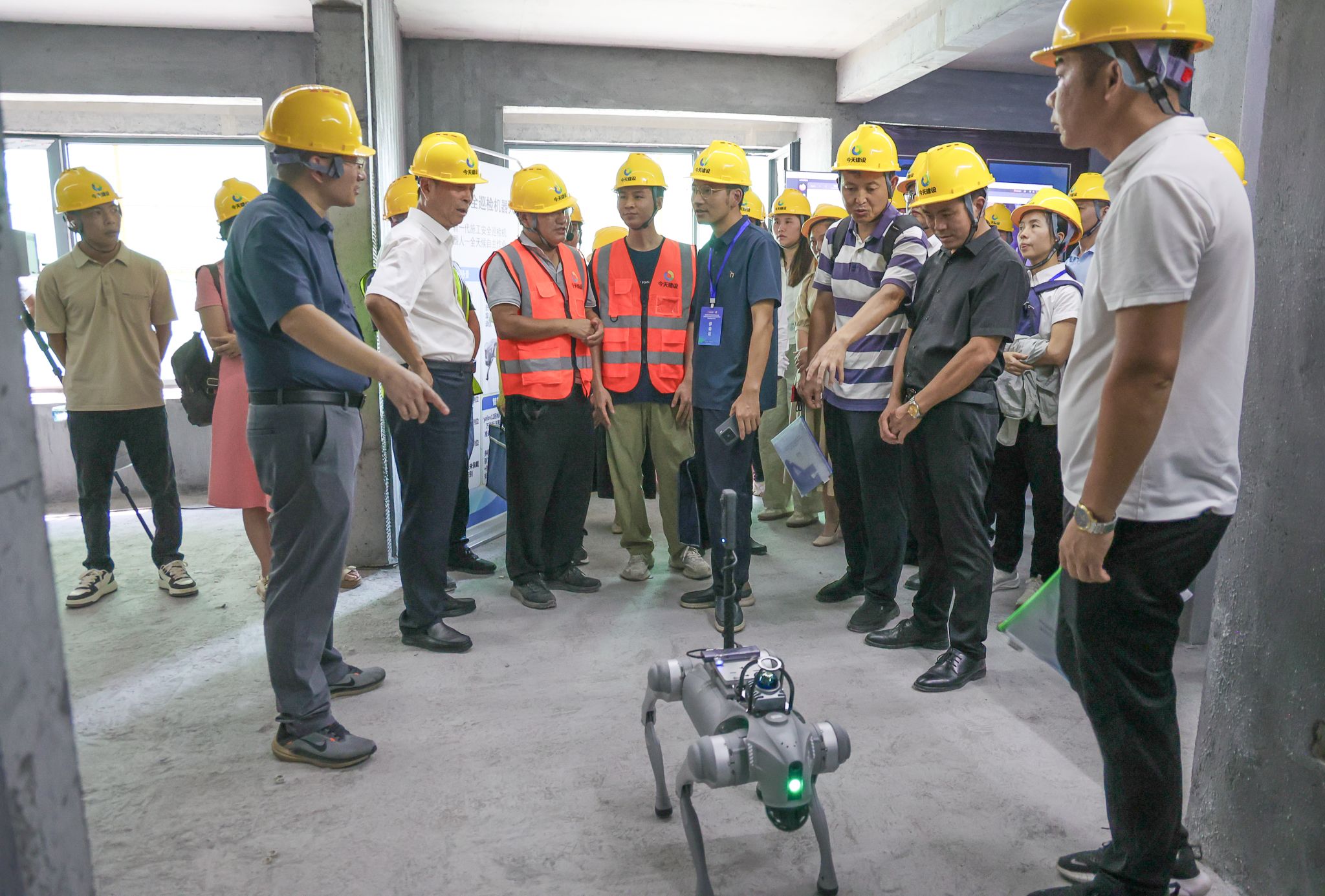 学术报告和联席会结束后,全体参会人员在图书馆北门合影留念,标志着本次系列活动圆满落幕。随后参会院士专家嘉宾在徐理书记带领下前往新余市高铁新区项目现场观摩。现场展示的自主研发智能安全巡检机器人,搭载 AI 视觉识别与红外热成像技术,可实现危险区域 24 小时无人巡检,识别精度超 98%,效率较传统人工提升 6 倍;智能建造技术集成应用通过 BIM 全流程协同、装配式构件自动化生产、施工数字孪生管控,将项目工期压缩 25%,建筑垃圾排放量减少 30%,让嘉宾直观感受智能建造在提质、增效、降本、减耗方面的显著成效。