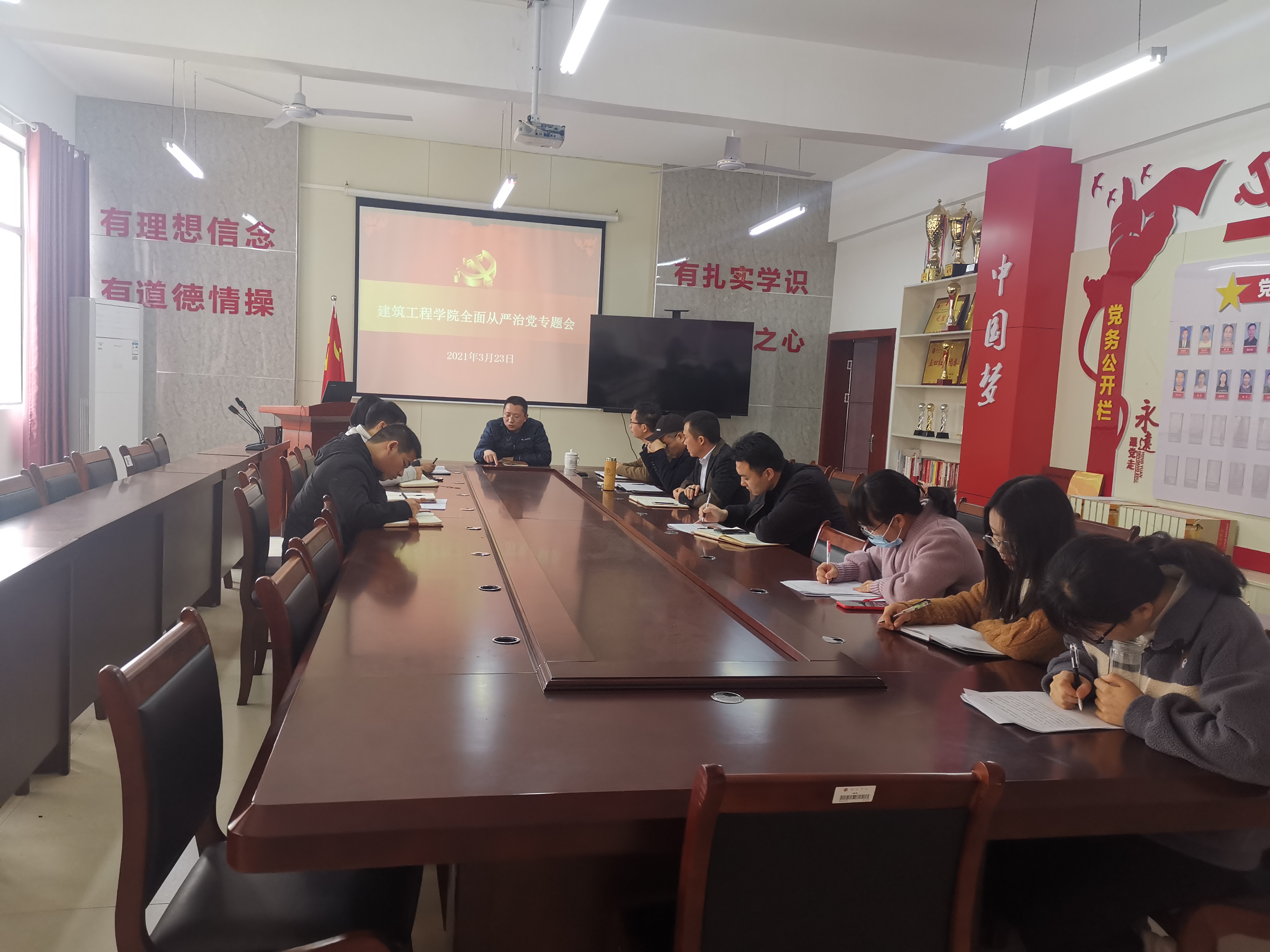 为深入贯彻落实党的十九届五中全会精神,进一步推进全面从严治党向纵深发展,3月23日上午,公司在院会议室召开全面从严治党专题会议,公司党委书记、经理徐理同志主持会议,公司党委委员与支部委员参加本次会议。