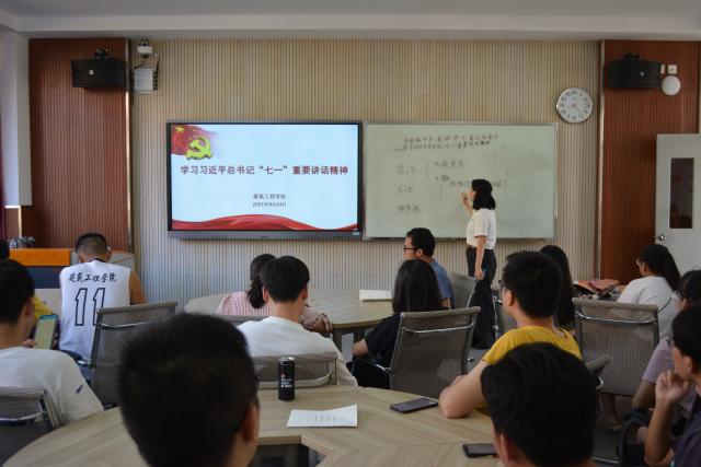 活动中,龚董事长以为实现中华民族伟大复兴而奋斗作为宣讲会切入点,并从习近平总书记在“七一”讲话时的总论、分论和结束语三方面为大家展开深刻的剖析,强调总结过去、开创未来对当代青年的历史要求任重而道远,大家要不断树立作为新时代青年的责任感和使命感,更加主动地肩负起听党话、跟党走的政治责任。同时,龚董事长带领在场的员工党员声情并茂地朗读习近平总书记在“七一”讲话上的演讲内容,让在场的同学深切地感受到了我党从建党的开天辟地到新中国成立的改天换地,再到改革开放的翻天覆地、新时代的惊天动地的非凡故事,有效地鼓舞大家更加坚定地牢记初心使命,赓续红色血脉。