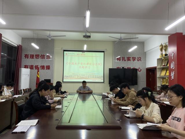 本次专题学习会主要围绕《中国共产党纪律处分条例》第一至第六章以及修订重要意义、修订亮点、以严明的纪律推进党的自我革命等方面进行学习。新修订的《条例》显现出政治统领性更显著、问题导向性更突出、可操作性更精准的鲜明特征。