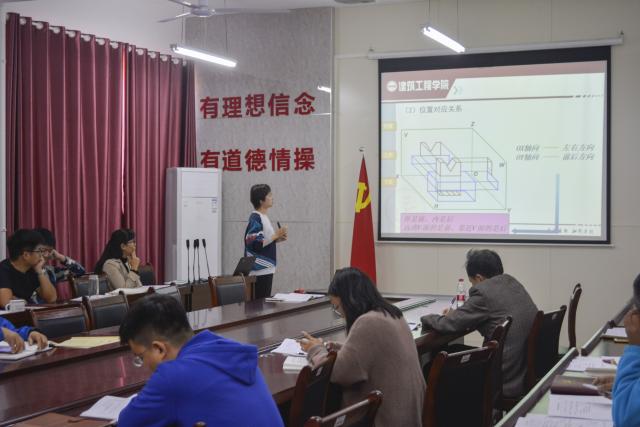 示范课上,潘洪科老师就《混凝土基本原理》中单筋矩形截面受弯构件正截面受弯承载力计算展开讲述,同时列举实例;廖菲菲老师就《土木工程制图与识图》向大家介绍了三面投影体系的相关知识点课后院督导组对此次示范课进行评价总结,一致认为两位老师授课逻辑性强,概念表述清晰,对重难点的讲解十分透彻,值得全院教师学习