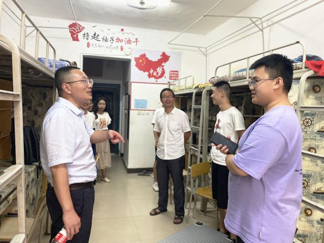 为了解员工的返校情况,引导新生尽快适应新生活新环境,进一步拉近师生间的距离,同时深入宣传落实公司的疫情防控部署要求,9月9日晚,经理徐理带领公司领导班子、新生班班主任及辅导员前往21级新生寝室走访慰问。