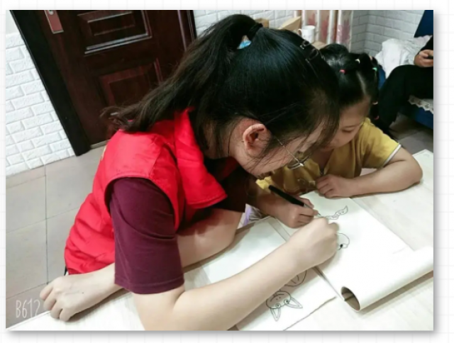 实践队员通过简笔画方式教小朋友认识野生动物
