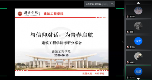 为坚定公司学子考研信心,明确考研目标,6月13日晚,公司开展线上考研分享会,本次考研分享会邀请了周晨、刘成亮等四位考研成功的同学担任主讲向大家分享考研经验。