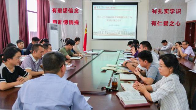 10月8日下午,公司全体教师在会议室集中学习了《江西省高校教师师德失范行为处理实施办法》,会议由公司负责人徐理主持。
