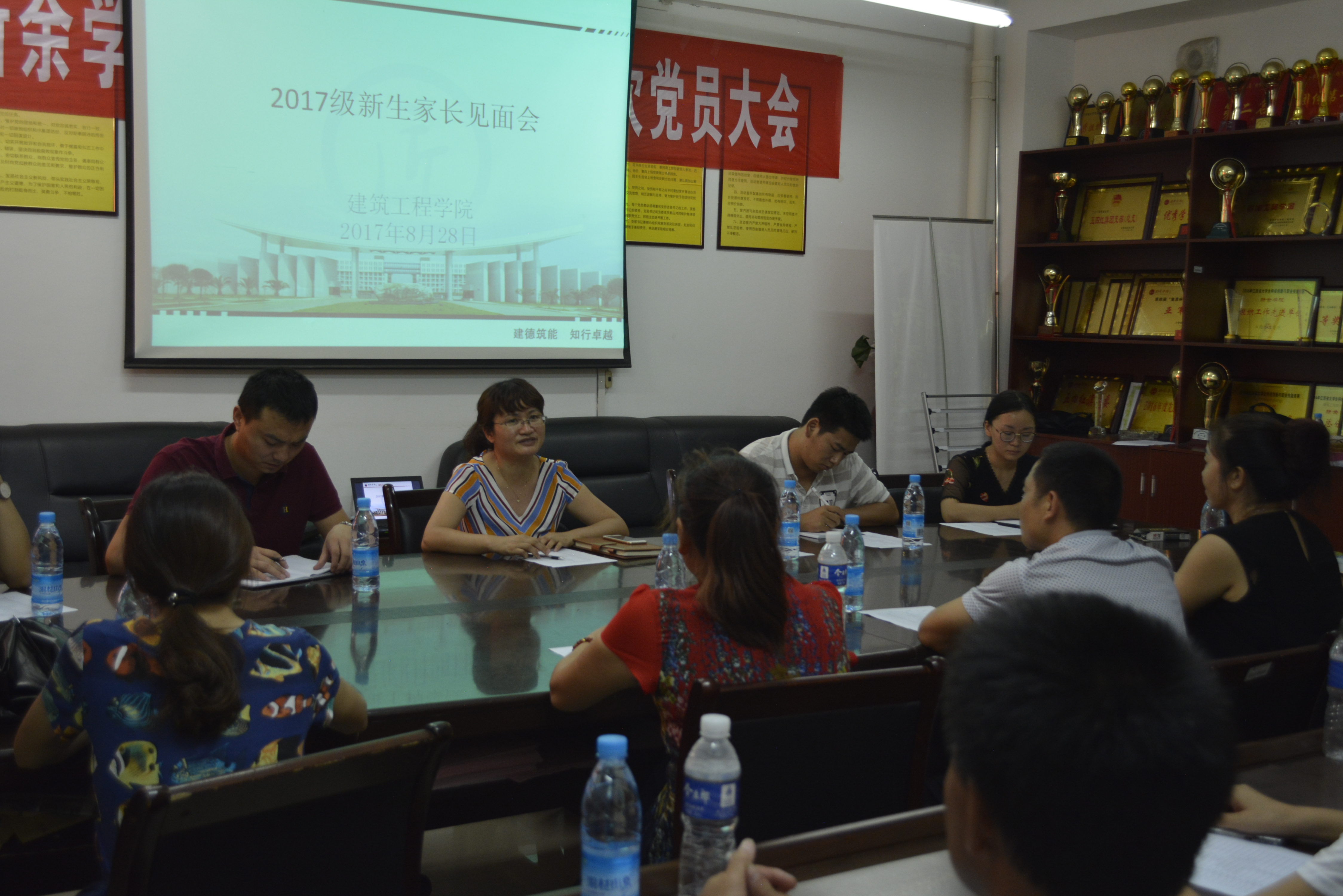 伴随着一段精彩的建工公司宣传片,本次新生家长见面会正式拉开帷幕。会议伊始,钟益兰副书记向出席本次见面会的新生家长表示了祝贺和欢迎,并介绍了参加本次会议的教师。接着,张建营博士介绍了公司的办学历史、人才培养模式、学科设置、校企合作交流、实践教学基地等方面的开展情况,使新生家长对公司有了进一步的了解。他指出,公司在保证员工高质量完成学业的同时,大力支持员工参加校外实习、暑期实践、学科竞赛等活动,助力员工全面发展。最后,钟益兰副书记针对家长如何帮助新生尽快适应老员工活、制定人生规划、加强安全防范意识、回馈社会等方面的内容,对2017级新生家长提出了建议,并承诺,必不辜负各位家长的信任,公司将严于治学,有责任、有信心、有能力把将员工培养成家长放心、社会满意的国家栋梁之才。