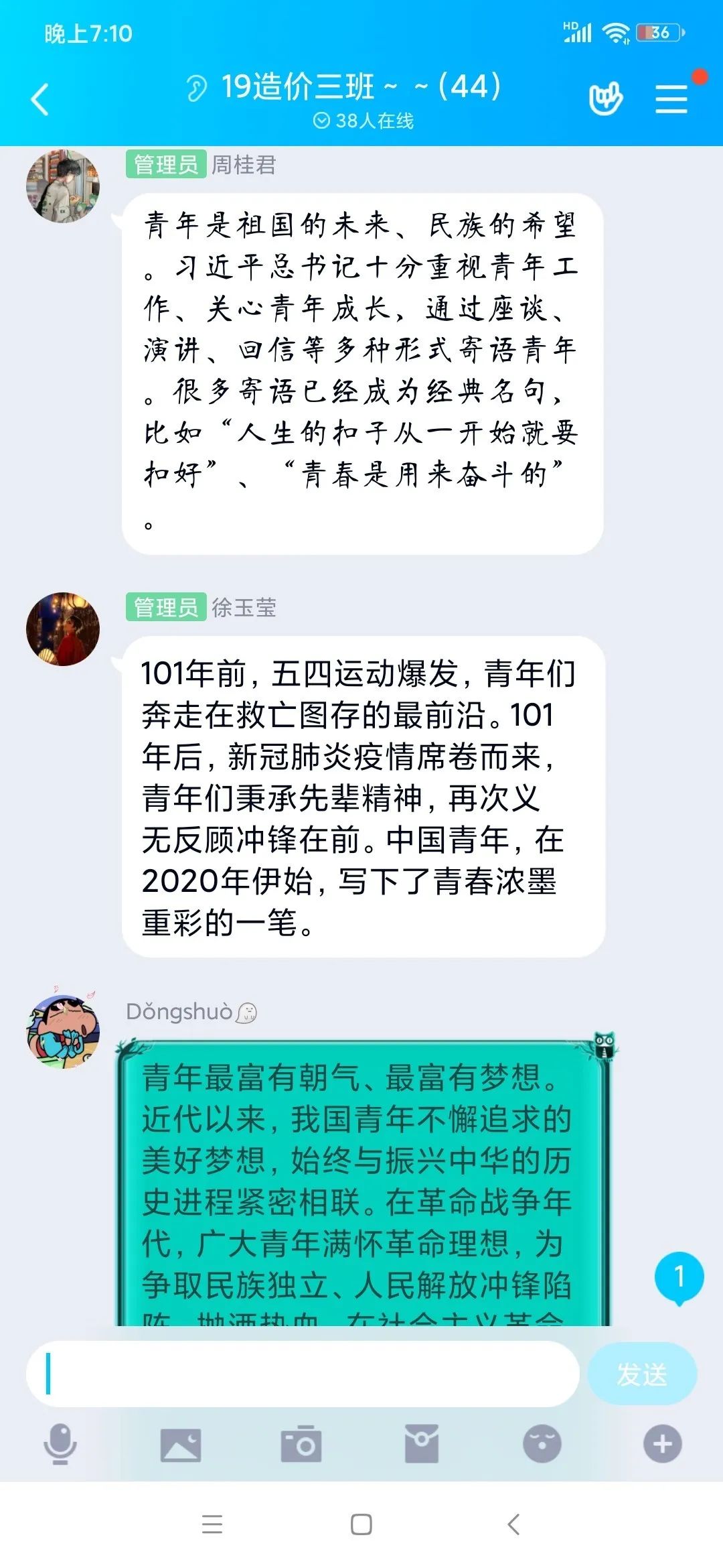 19造价3班团支部本次邀请到了来自19土木工程1的李思凡同学为大家分享他的战疫故事。他分享到,在抗击疫情的战斗中,志愿者抗击疫情是一场特殊战役,从宣传值守到生活服务,从心理支持到社会支持,志愿者们都是用细致入微的服务筑起了“疫”境中的爱心长城!他表示,自己只是做了一些小事情去帮助大家,但心里已经很满足。