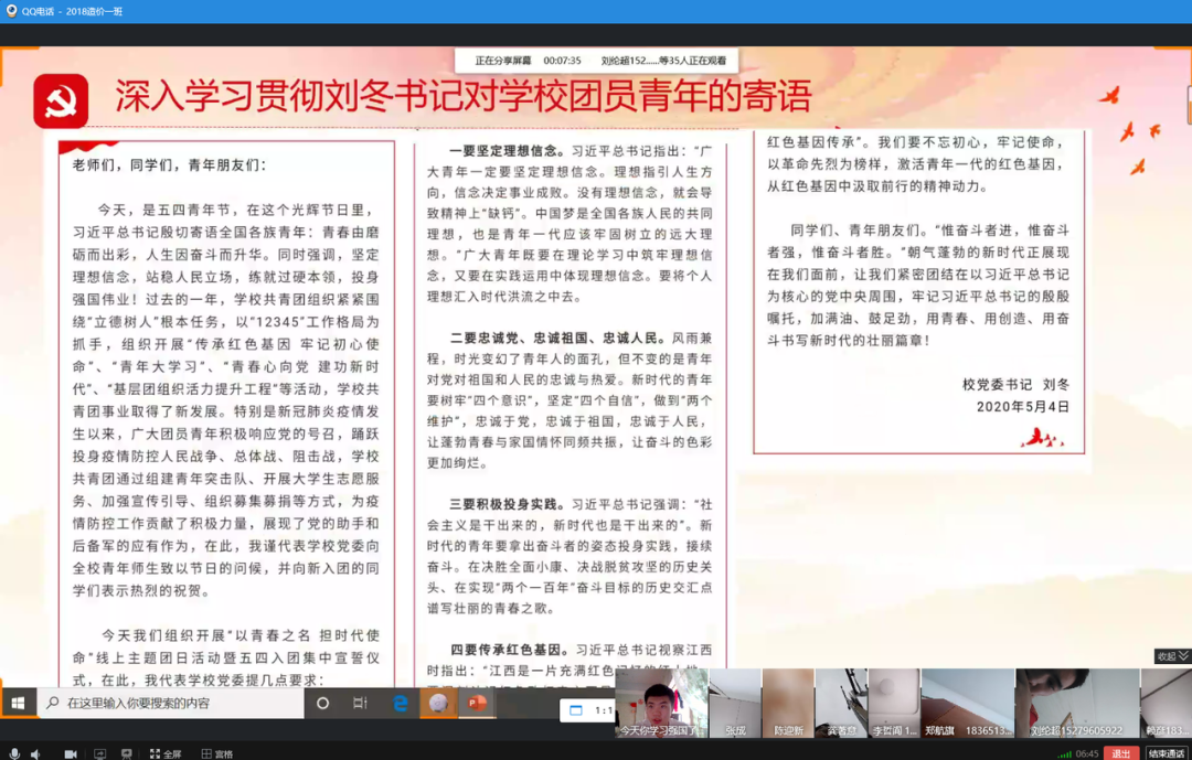 学习公司党委刘冬书记五四青年节对公司团员青年的寄语