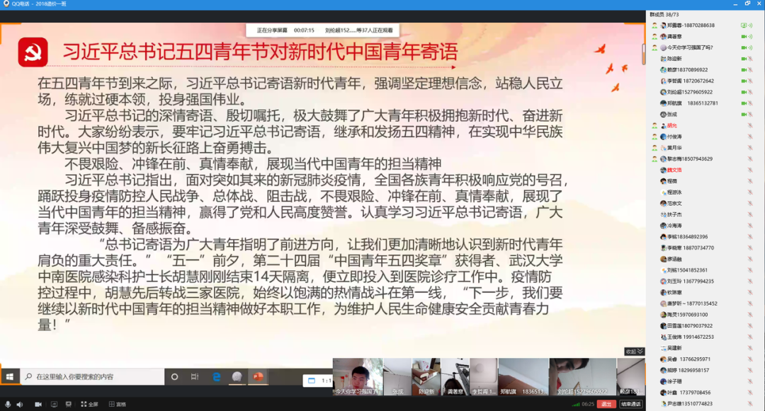 青春由磨砺而出彩,人生因奋斗而升华。面对突如其来的新冠肺炎疫情,全国各族青年积极响应党的号召,踊跃投身疫情防控人民战争、总体战、阻击战,不畏艰险、冲锋在前、真情奉献,展现了当代中国青年的担当精神,赢得了党和人民高度赞誉。同时他强调今年是决胜全面小康、决战脱贫攻坚的收官之年,也是实现“两个一百年”奋斗目标的历史交汇之年。新时代中国青年要继承和发扬五四精神,坚定理想信念,站稳人民立场,练就过硬本领,投身强国伟业,始终保持艰苦奋斗的前进姿态,同亿万人民一道,在实现中华民族伟大复兴中国梦的新长征路上奋勇搏击。