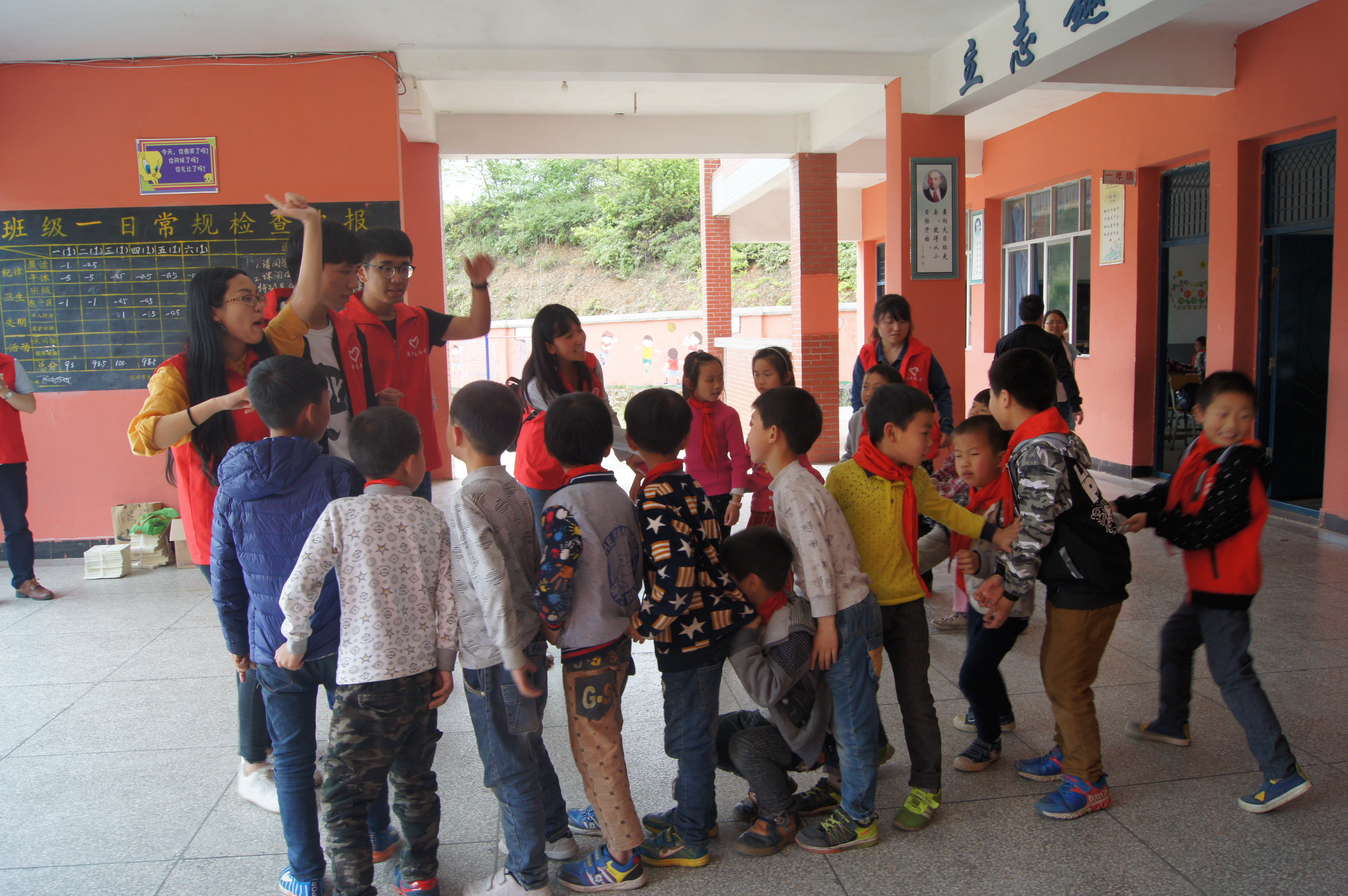 其次,志愿者们与各自负责年级的同学亲切互动。老鹰捉小鸡、扔手绢、词语接龙、打篮球、抢凳子、跳绳等等,嬉笑打闹不亦说乎。就连简简单单的赛跑都变得那么有趣。慢慢的孩子们都参与到其中。在游戏过程中,孩子们也纷纷为我们展示了自己的才艺。有的孩子唱歌,有的孩子跳舞,有的孩子背诵古诗,还有些男生为我们表演了翻跟头,期间,我们带一批孩子到篮球场学习打篮球,虽然他们以前都没接触过,但是他们学习能力实在是让我们感到惊讶。看着他们童真稚嫩的脸庞都呈现出灿烂的笑容,大家觉得再累都是值得的。
