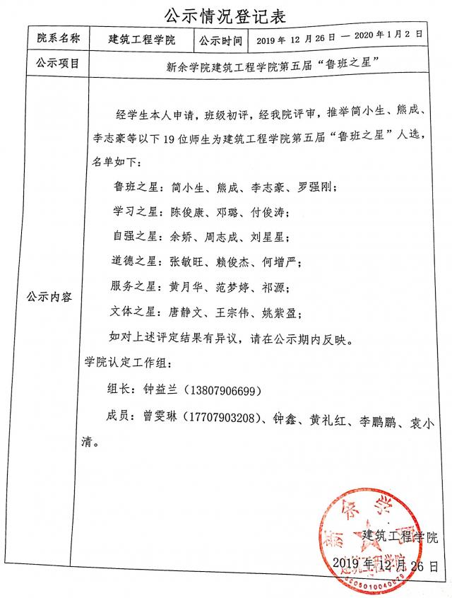 PA视讯官网第五届“鲁班之星”公示